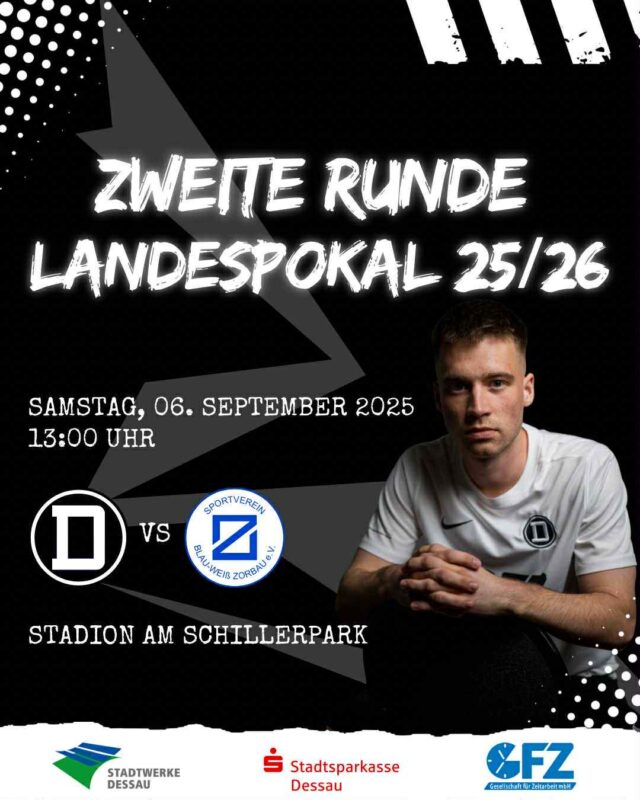 Zwei Ligaspiele sind gespielt, das zweite Pokalspiel der Saison steht an. Nach dem 3:0 in der ersten Runde beim SC Naumburg, empfangen wir nun Oberliga-Absteiger Blau-Weiß Zorbau.