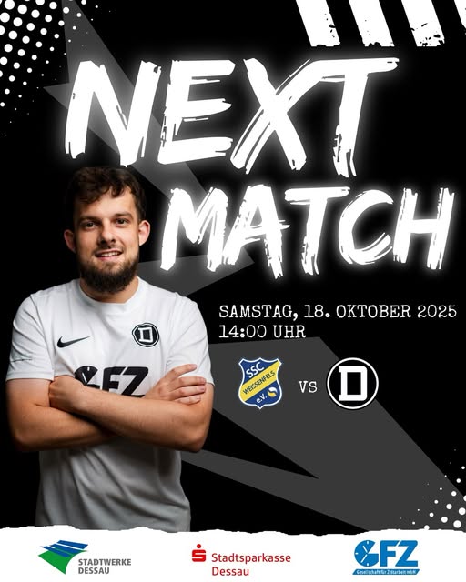 Nach dem Pokalspiel gegen den VfL Halle 96 fahren die 05er mit breiter Brust zum SSC nach Weißenfels. Am Samstag, den 18.10.2025, geht’s für unseren SV Dessau 05 beim SSC um Punkte. Seitdem Coach Dimitrios Mitsis bei den 05ern Chef ist, gabs in Weißenfels noch keinen Punkt und kein Tor. Unsere Jungs sind aber heiß auf die nächsten Punkte und wollen die Misere in Weißenfels beenden. Der Respekt wird auf beiden Seiten groß sein. Auf 05er Seite muss man wieder über sein Leistungsmaximum hinausgehen, um etwas zu holen.