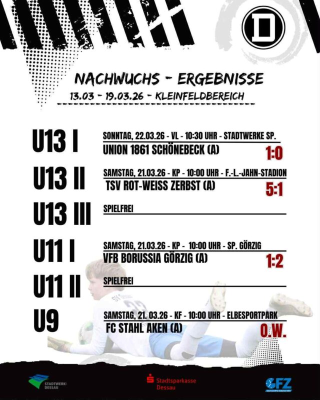 Zum Schluss noch die U9: Von starken Leistungen in der U11-Kreisliga beflügelt, ging es nach Aken. Das Hinspiel gehörte zu den besten Auftritten im Ligabetrieb. Im Rückspiel präsentierte sich Aken jedoch deutlich verbessert und hatte den ein oder anderen Kniff parat. Unsere Schillerpark-Kicker fanden heute nicht richtig ins Spiel. Zwar dominant, zwar in letzter Sekunde gewonnen – aber mit zu vielen eigenen Fehlern und Ungenauigkeiten: Das geht besser! … und dann blicken wir auf die manchmal harte Seite unseres Lieblingssports – diesmal in Görzig. Unfair? Ein bisschen auf jeden Fall! Sowohl der Gegner als auch Verband machten bei der Ansetzung keine gute Figur. Am Ende waren wir nur mit Unterstützung aus der U9 und U11 II überhaupt spielfähig. Dennoch standen richtig gute Kicker auf dem Platz. Auch und besonders die Leihspieler machten ihre Sache unter den Augen von Jugendleiter Frank Tischer „sehr, sehr gut“.