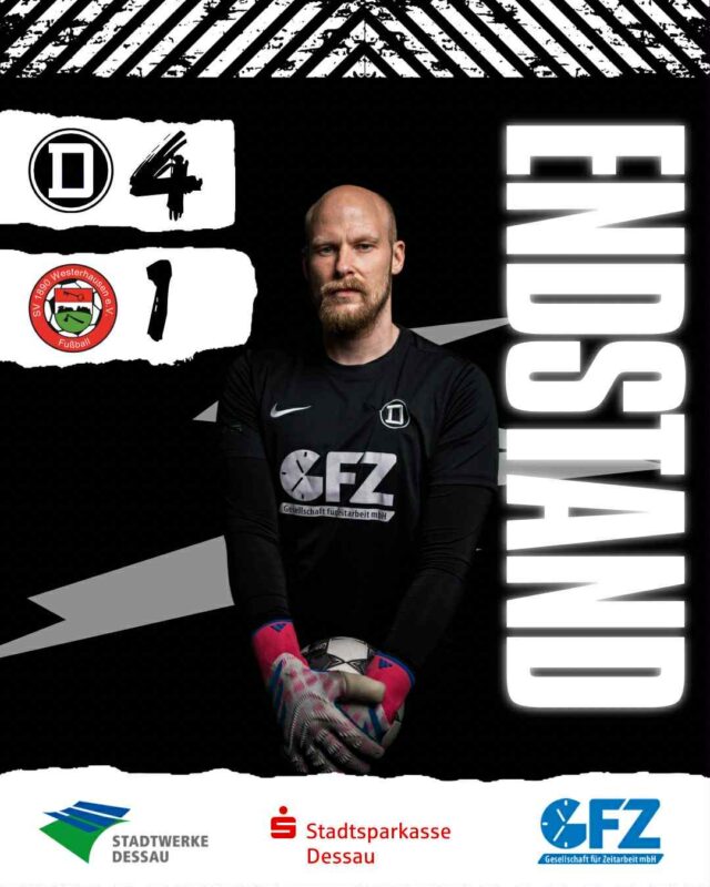 Dessau. Am 21. Spieltag haben sich die Kicker des SV Dessau 05 selbst beschenkt: Gegen den SV Westerhausen stand am Ende ein klarer 4:1-Erfolg, mit dem die Gäste die Heimreise in den Harz antreten mussten. Bereits in der Vorwoche hatte Dessau gegen den BSV Ammendorf im eigenen Stadion mit demselben Ergebnis gewonnen – es war also das zweite 4:1 hintereinander im Schillerpark. Zwischenzeitlich sprang das Team damit sogar auf Rang zwei der Tabelle.